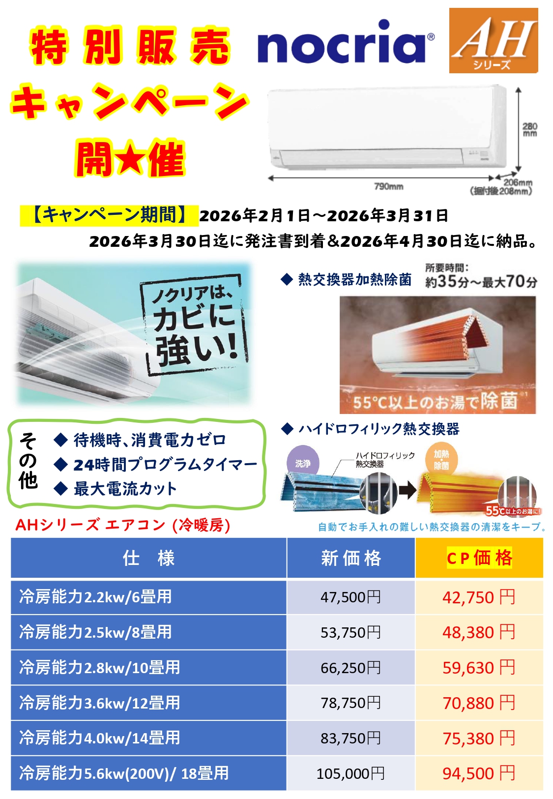 【お知らせ】特別販売 CP 開催 ゼネラル製エアコンノクリア