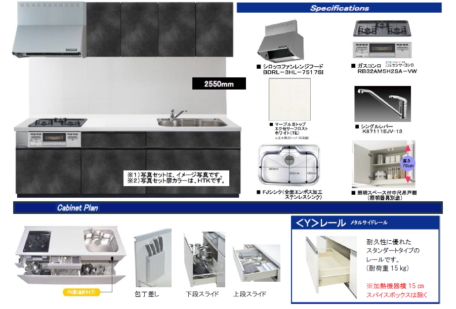 ワークトップは、標準仕様で「人造大理石」を採用し、熱や衝撃に強く、お掃除やメンテナンスを考えた工夫が施されています。